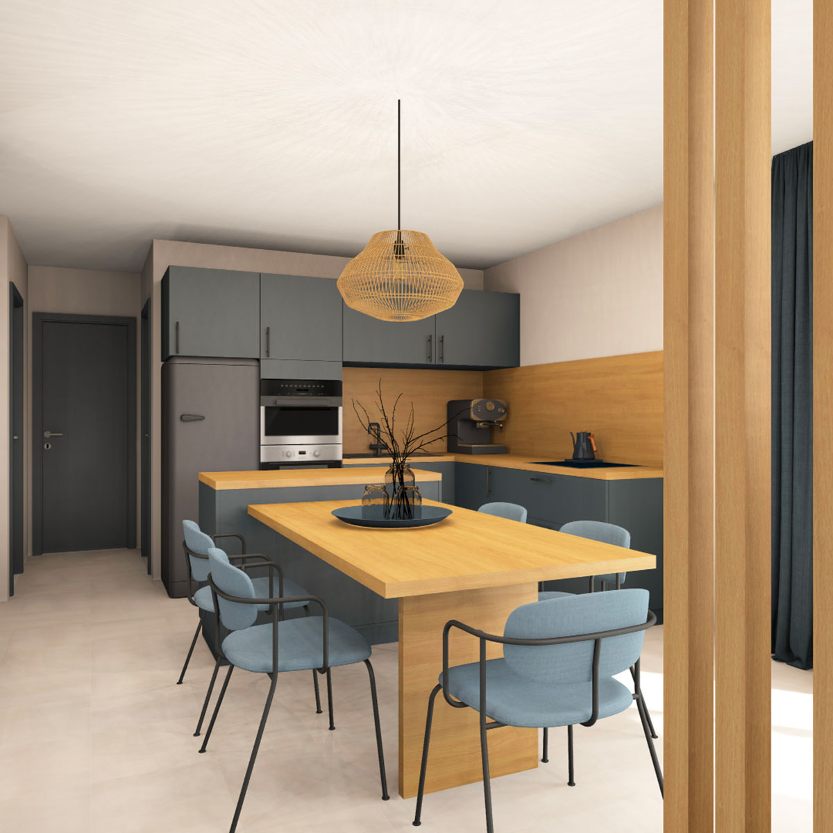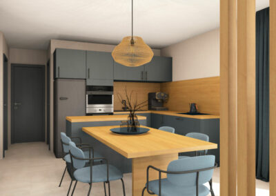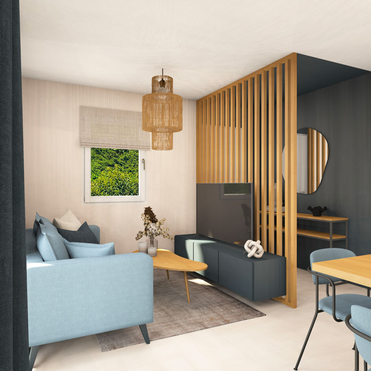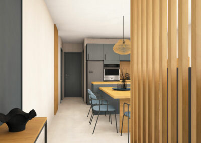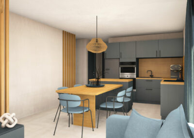 Création de visuels 3D pour l’aménagement d’un espace de vie dans une maison neuve.